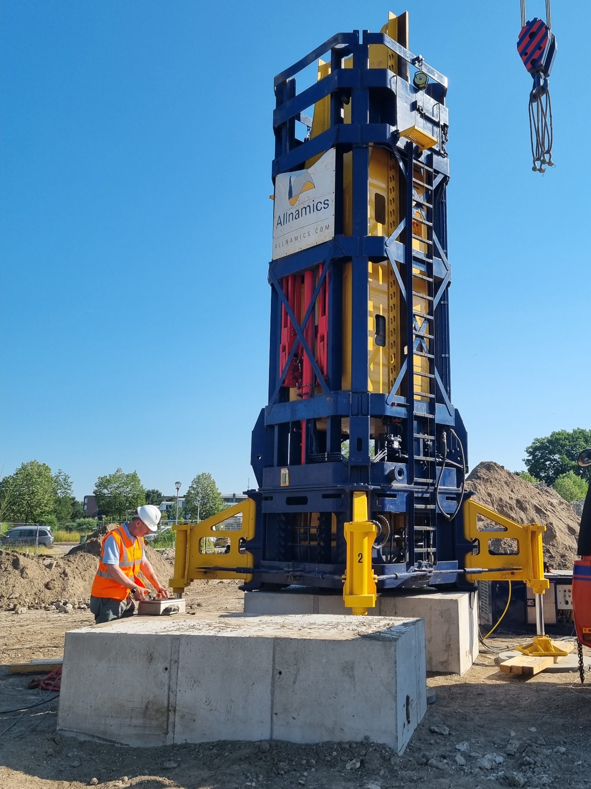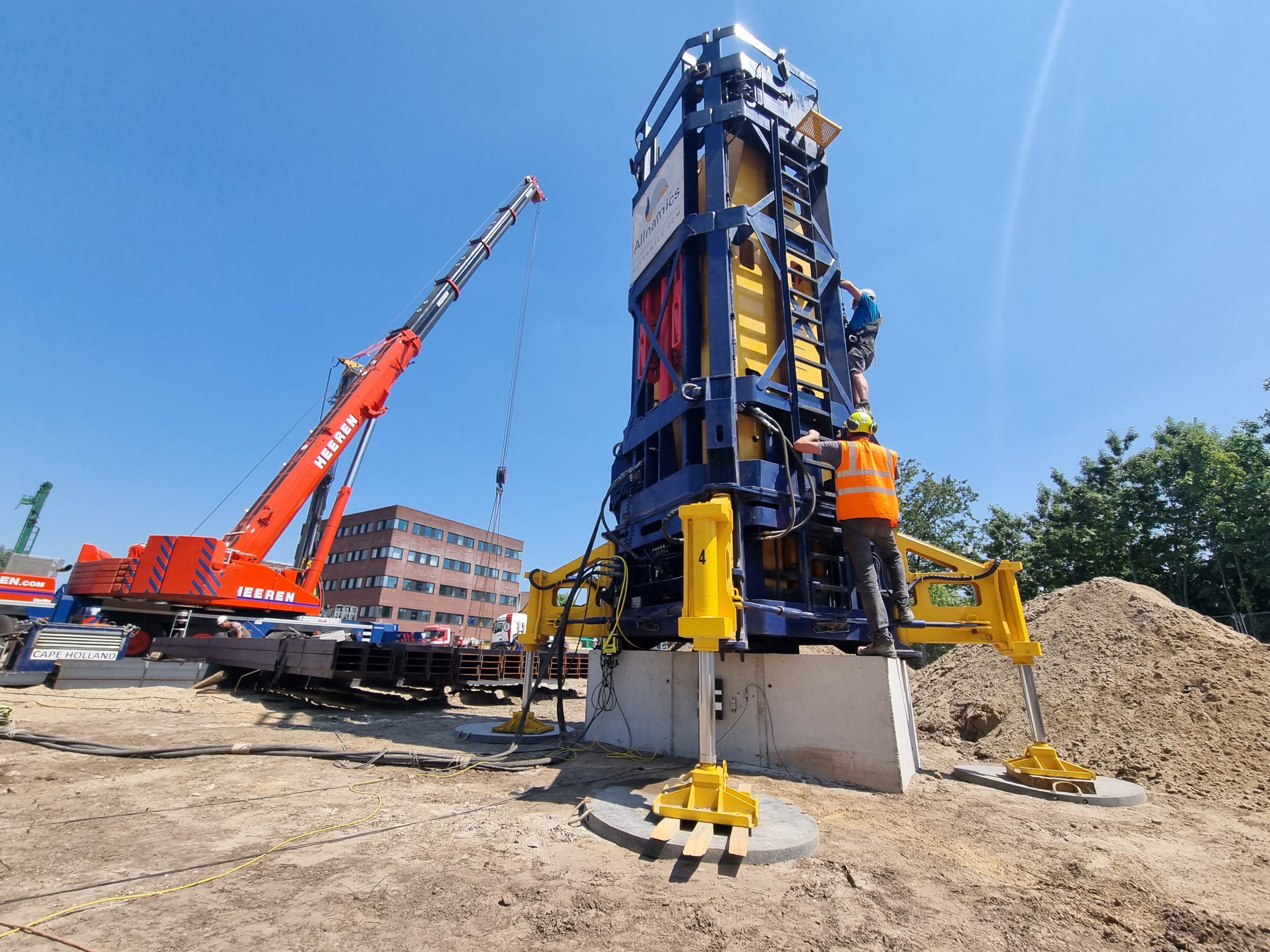 Subsequently, the contractor, Ouwehand Bouw Gorinchem decided to conduct suitability tests on test panels. Allnamics carried out six test loads in two days in accordance with NPR 7201 class C on double CSM panels. The tests were Rapid Load Test, using the StatRapid device. The test load was increased in 6 load steps to a maximum of 11,000 kN. The settlement and elastic deformation were found to be minor.