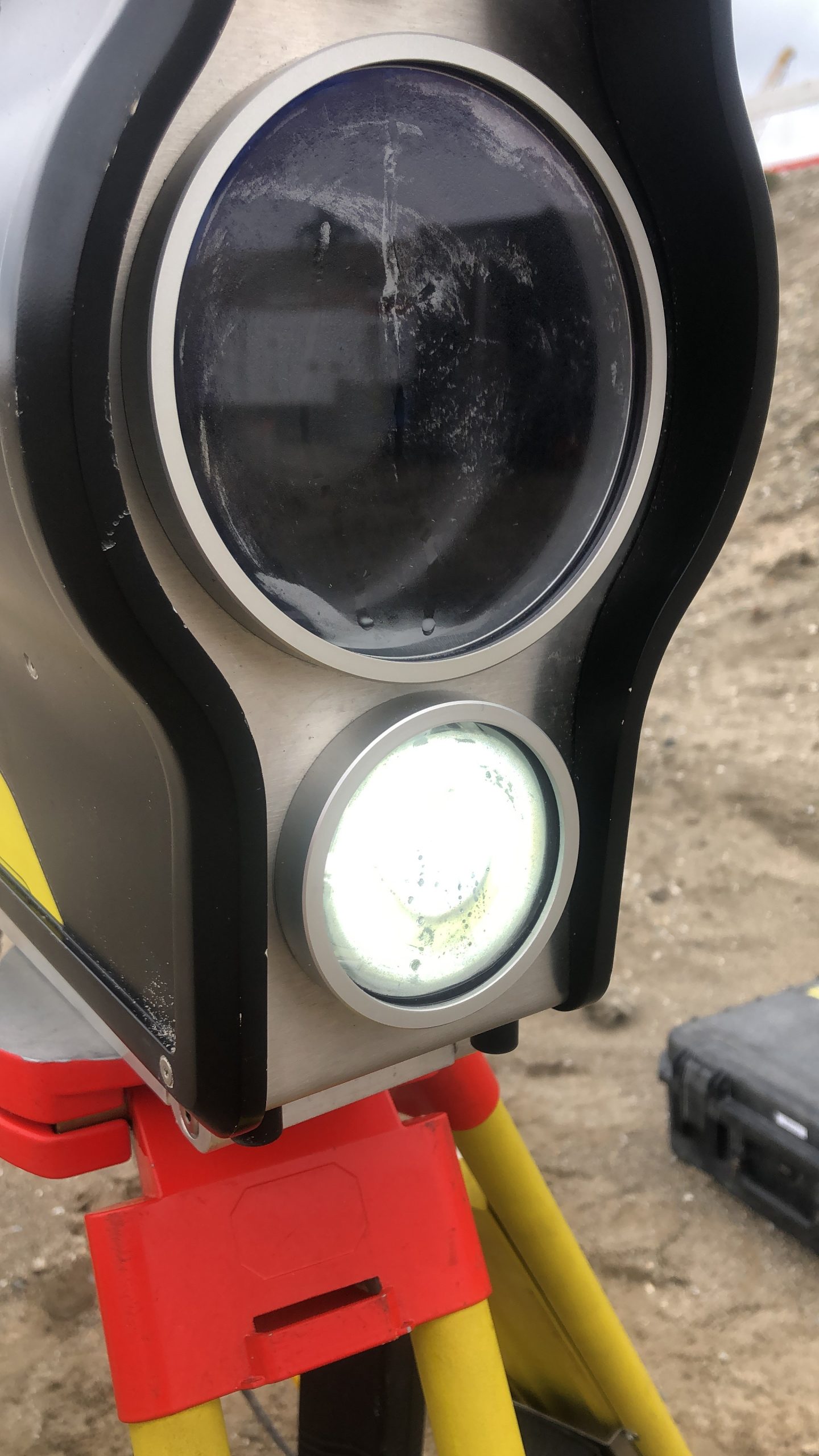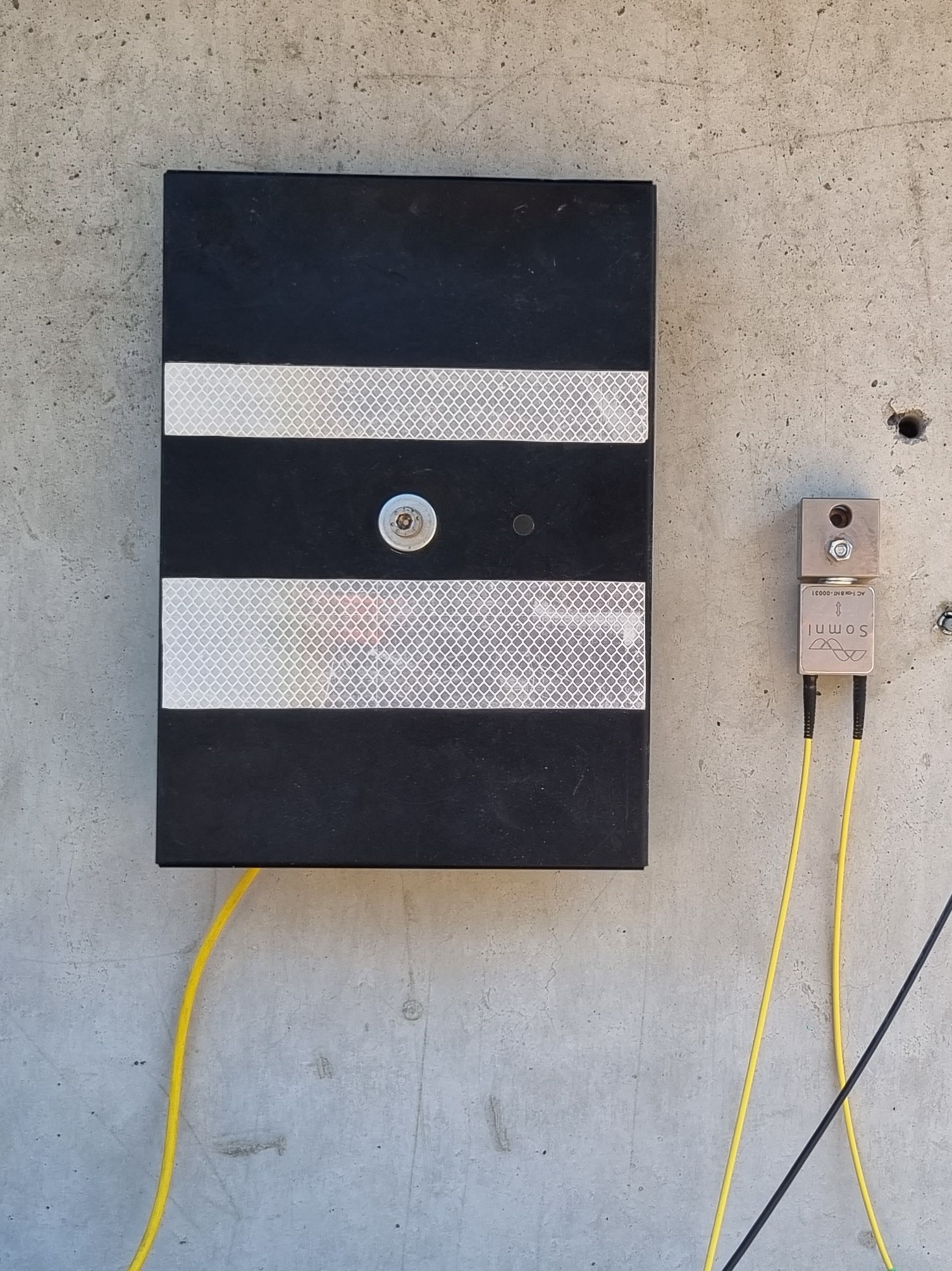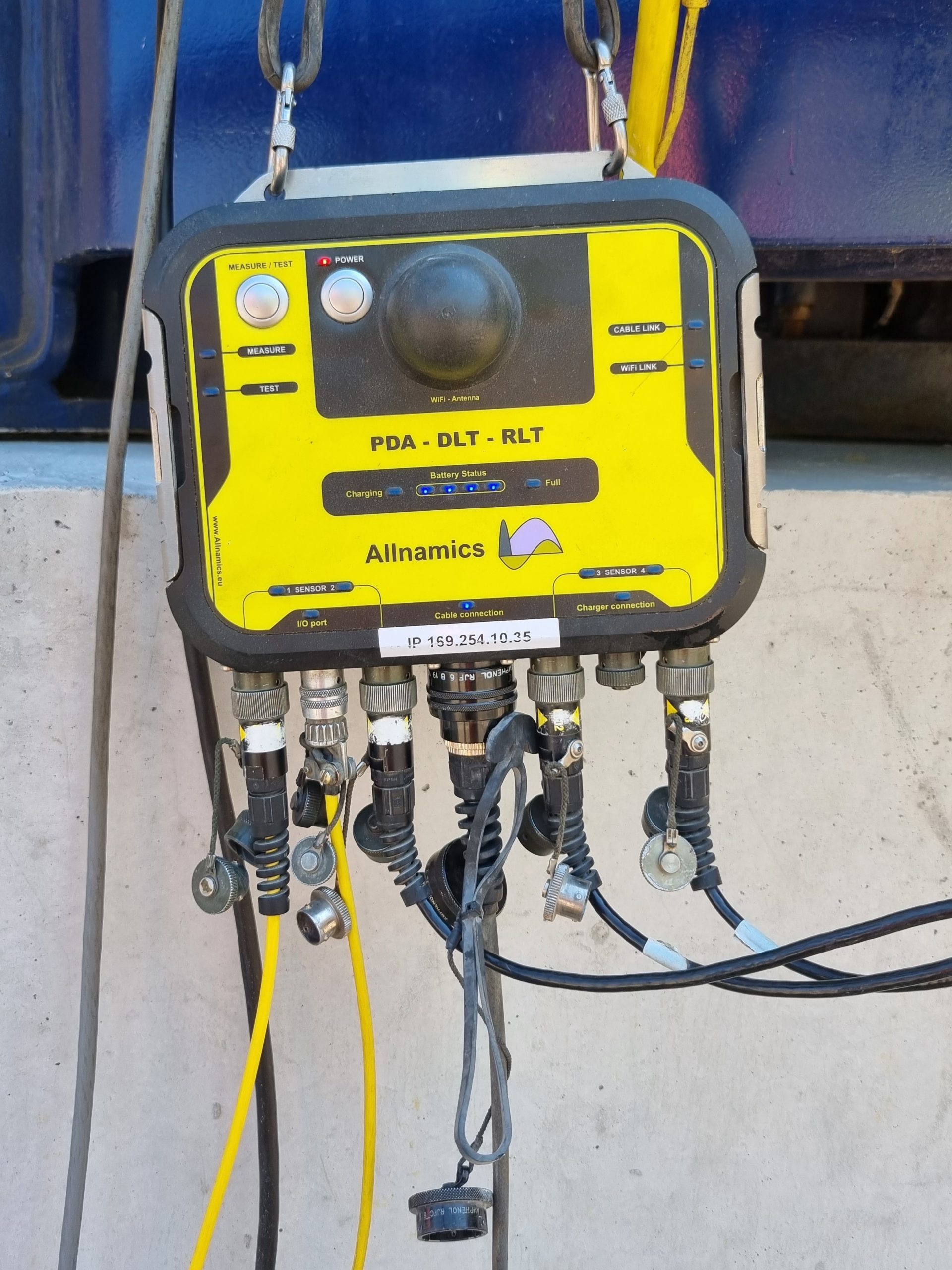 - PDR meetsysteem op de paal voor het meten van de kracht uit de drukdozen, verplaatsingen van de optische Reyca en versnellingen